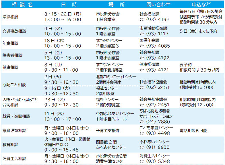 くらし 相談窓口 21/31 前の記事 次の記事 発行日 : 2025年12月01日 自治体名 : 千葉県富里市 広報紙名 : 広報とみさと 令和7年12月号 ・相談は無料で秘密は厳守されます。 ・相談時間は12:00~13:00を除きます。 Tweet シェアする 男性のための料理教室 急病のときは?