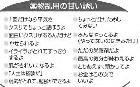 ・薬物乱用の危険性は身近にあり、自分には関係ないと思わないこと。