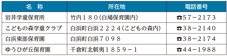 公設民営学童…富浦、富山、三芳、千倉、嶺南