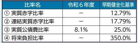 令和6年度の決算に基づき算定された南房総市の健全化判断比率および資金不足比率は、すべて基準を下回りました。