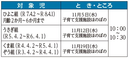 申込み・問合せ:子ども家庭支援室ほのぼの