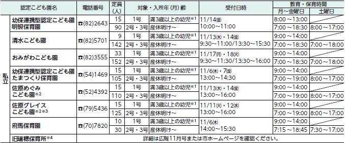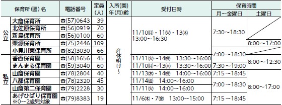 ※放課後児童クラブ・幼稚園(認定こども園以外)の入所募集は広報11月号に掲載予定です