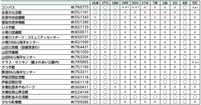 ※2:体験学習施設へ入館できますが、多目的室などの利用はできません