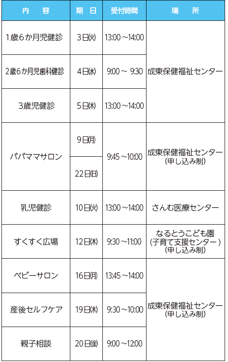 ※蓮沼保育園は10:00~11:00、日向保育園は10:00~11:30