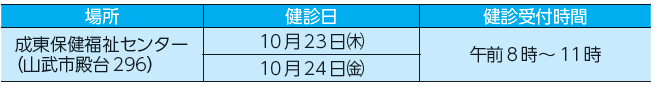 ・健診日当日に山武市国民健康保険被保険者・千葉県後期高齢者医療被保険者でない方は、受診できません。