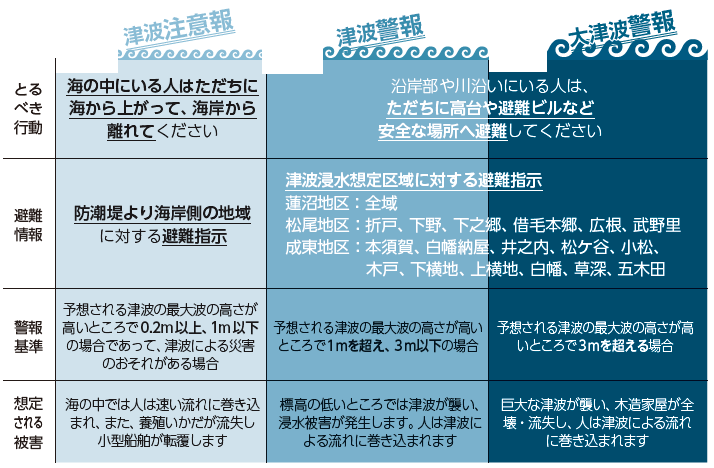 ※7月30日は、「津波注意報」から「津波警報」に格上げされました。「津波警報」が「大津波警報」に格上げされることも考えられます。