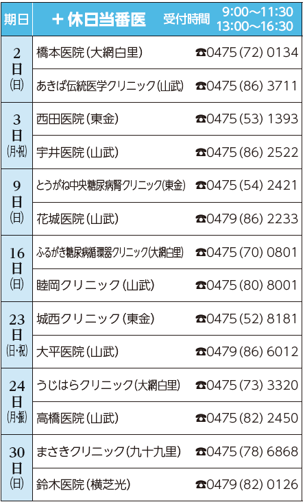 ※都合により変更になる場合があります。休日当番医テレホンガイドでご確認ください。