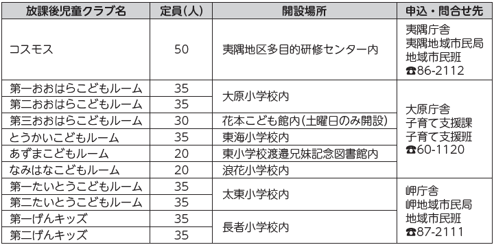 保護者が就労等により昼間家庭にいない小学生を対象に、安全確保と適切な遊びや生活の場として放課後児童クラブを開設しています。