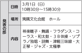 イベント 夷隅文化祭を開催します 29/48 前の記事 次の記事 発行日 : 2026年02月01日 自治体名 : 千葉県いすみ市 広報紙名 : 広報いすみ 令和8年2月号 早春のおだやかなひとときを、ご一緒に!!皆様のご来場をお待ちしています。 問合せ先:夷隅公民館 【電話】86-5000 Tweet シェアする 布施千本桜まつりを開催します 映画『てっぺんの向こうにあなたがいる』上映のおしらせ