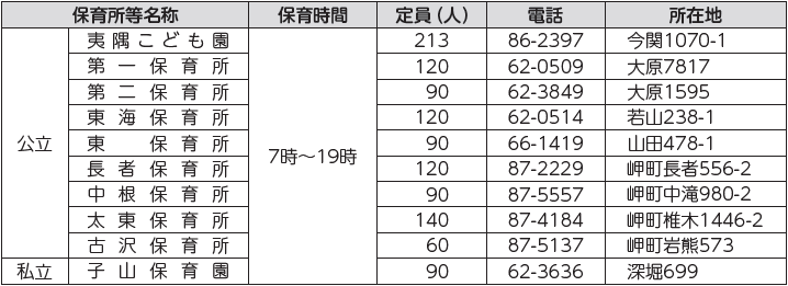または 大原庁舎(1階)子育て支援課 保育班【電話】60-1120