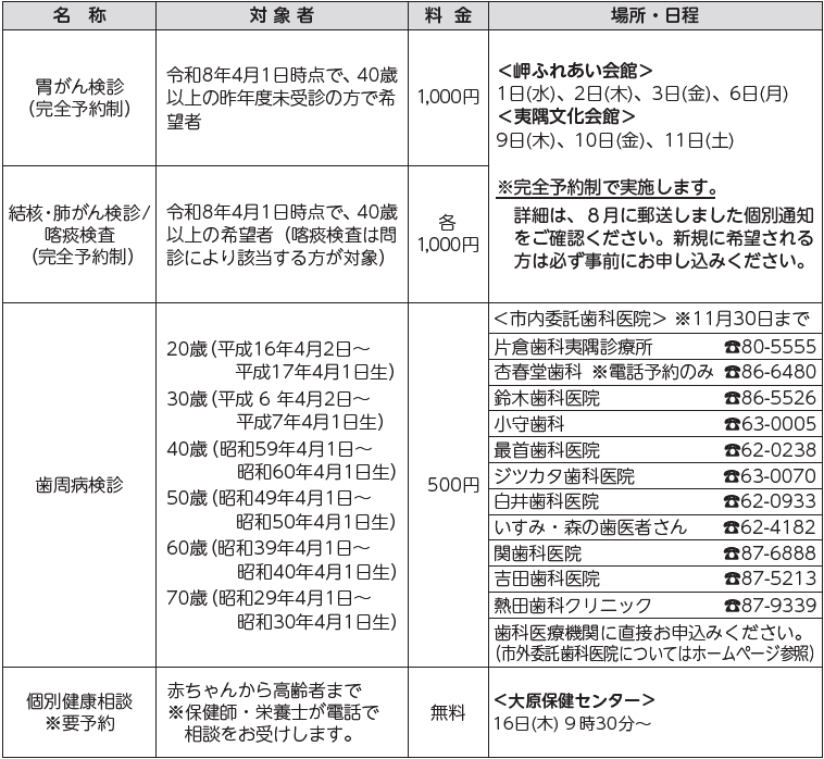 申込・問合せ先:大原庁舎(大原保健センター内) 健康高齢者支援課 健康づくり班