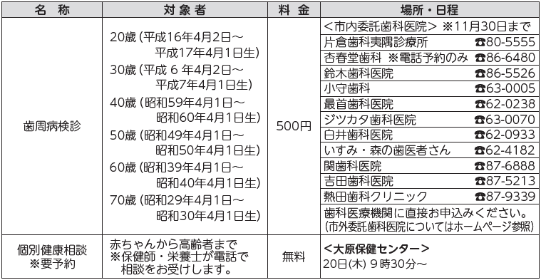 健康 保健センター11月のお知らせ 29/65 前の記事 次の記事 発行日 : 2025年11月01日 自治体名 : 千葉県いすみ市 広報紙名 : 広報いすみ 令和7年11月号 申込・問合せ先:大原庁舎(大原保健センター内) 健康高齢者支援課 健康づくり班 【電話】62-1162 Tweet シェアする Q and A 一般質問 市政をきく(2) 11月8日は「いい歯の日」です!お口の健康づくりを見直してみませんか?