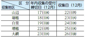 ■年末年始の粗大ごみ戸別収集電話受付および自己搬入日程
