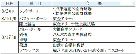 ※軟式野球、サッカー、テニス、バドミントン、クレー射撃、ゲートボール、アマチュアゴルフ、グラウンド・ゴルフ、弓道は終了しました。