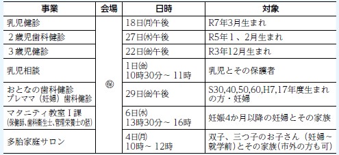 ※すべての健診と10か月乳児相談は個別通知をしています。上記事業は予約制ですので、必ずご連絡ください。