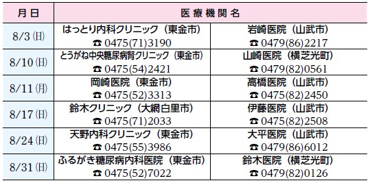 休日当番医テレホンサービス:【電話】0475-50-2531