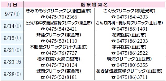 ・山武郡市急病診療所(東金市)【電話】0475-50-2511(受付時間20時~21時45分)
