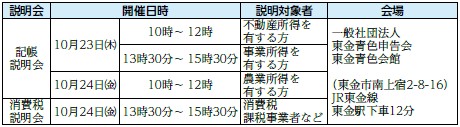 事業・不動産所得を有する方や消費税の課税事業者の方などを対象に、記帳・帳簿等保存制度や消費税の経理処理などに関する基本的な事項の説明会を開催します。
