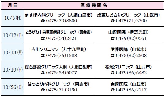 ・山武郡市急病診療所(東金市)【電話】0475-50-2511(受付時間20時~21時45分)