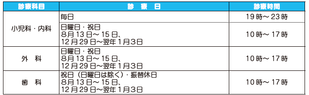 ■休日の救急・夜間診療(受付時間は診療終了の15分前まで)