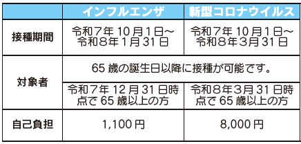 高齢者のインフルエンザや新型コロナウイルスに罹患すると、重症化することがあります。冬の感染症が流行する前にワクチン接種を検討しましょう!