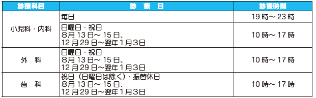■休日の救急・夜間診療(受付時間は診療終了の15分前まで)