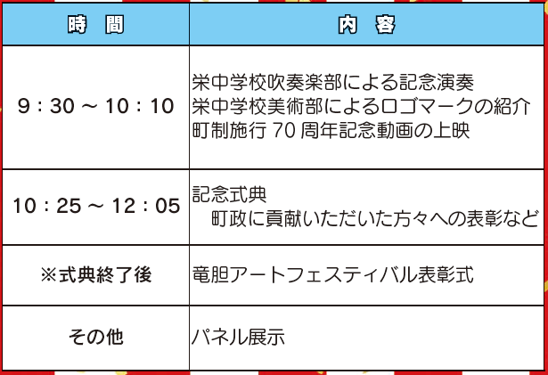 これを記念して、「栄町町制施行70周年記念式典」を開催します。
