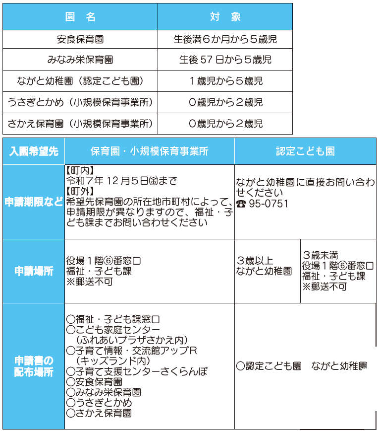 保護者の状況により入園可否を選考します。なお、申請書は町ホームページからもダウンロードができます。