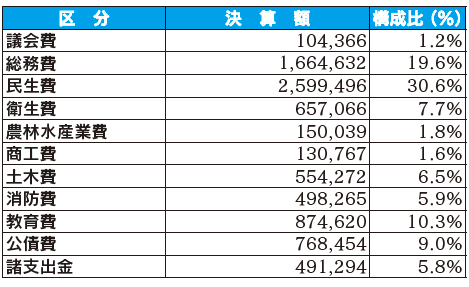 目的別歳出の状況(単位:千円)