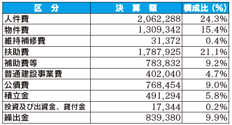性質別歳出の状況(単位:千円)