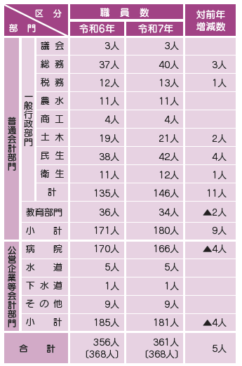 (注)職員数は、一般職で町から給与が支給されている者です。