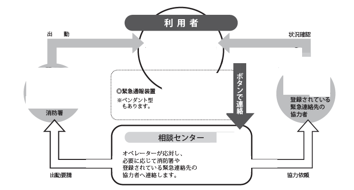 緊急通報装置は、急病などの緊急時や相談したいときにボタン1つで相談センターに連絡できます。