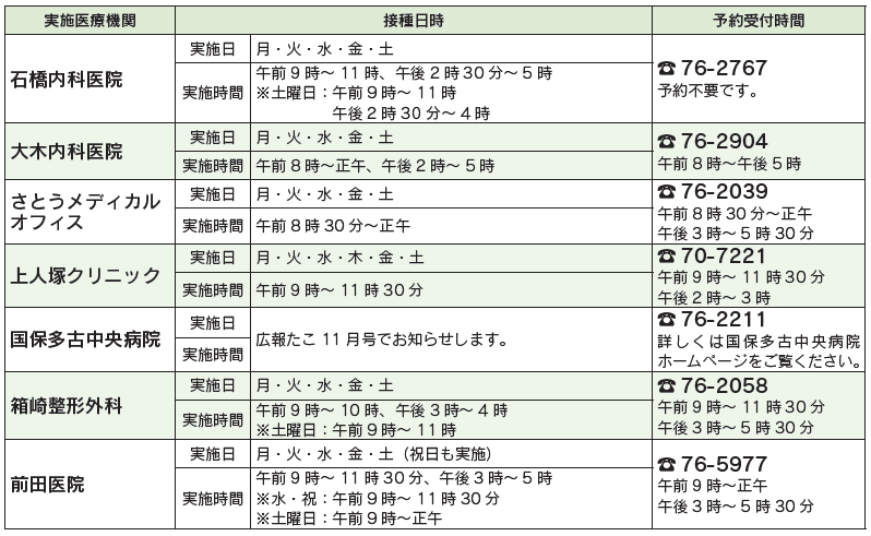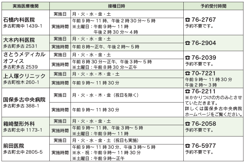 予防接種の受診に関して…各医療機関へ直接お問い合わせください。