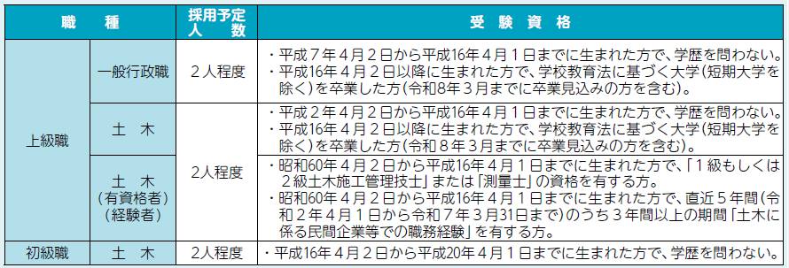 令和8年4月1日付け、採用予定の職員採用試験(2次募集)を行います。