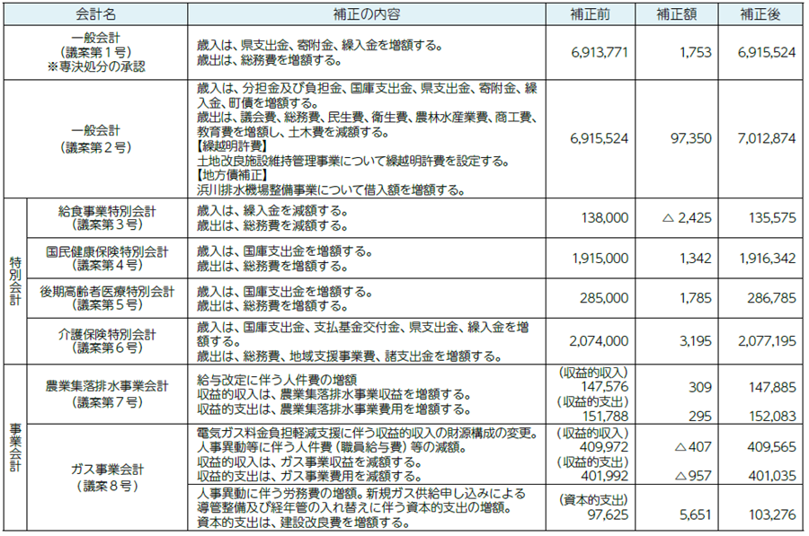 ■令和7年度の補正予算(議案第1~8号)(千円)