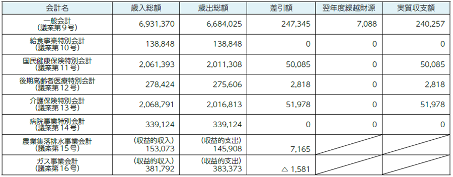 ■令和6年度の歳入歳出決算(議案第9~16号)(千円)