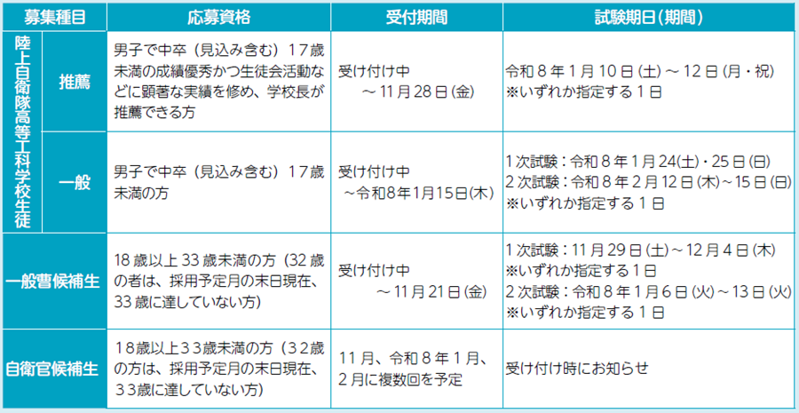 しごと 自衛官等募集 11/29 前の記事 次の記事 発行日 : 2025年11月01日 自治体名 : 千葉県九十九里町 広報紙名 : 広報くじゅうくり 令和7年11月号 ※詳しくは自衛隊茂原地域事務所までお問い合わせください。 問い合わせ:自衛隊茂原地域事務所(千葉地方協力本部) 【電話】0475-25-0452 Tweet シェアする 山武郡市広域水道企業団からのお知らせ Assistant Language Teacherを紹介します