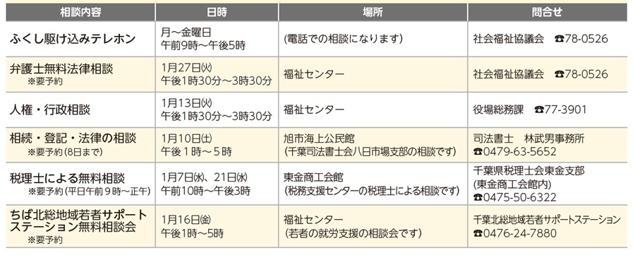 くらし 1月の無料相談 31/37 前の記事 次の記事 発行日 : 2026年01月01日 自治体名 : 千葉県芝山町 広報紙名 : 広報しばやま 令和8年1月号 お気軽にご相談ください Tweet シェアする 1月のごみを出す日 航空科学博物館情報