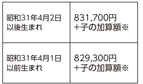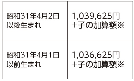 受給者に生計を維持されている子がいるときに加算がされます。(子とは、18歳になって最初の3月31日までの子、または20歳未満で1・2級の障害がある子)