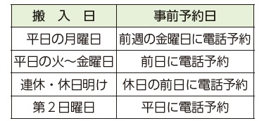 ※事前予約日が非営業日⇒直前の営業日に電話予約