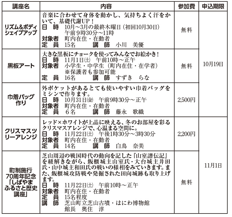 くらし 公民館講座の参加者募集 7/41 前の記事 次の記事 発行日 : 2025年10月01日 自治体名 : 千葉県芝山町 広報紙名 : 広報しばやま 令和7年10月号 申込期限までに中央公民館までお申し込みください。 定員になり次第、締め切ります。 問合せ:中央公民館 【電話】77-0066 Tweet シェアする 公民館図書室 文化協会主催文化祭が開催されます