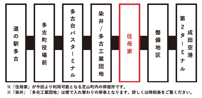 10月1日(水)より、「多古ー成田空港間シャトルバス」に新しいバス停が追加され、芝山町内でもご乗車いただけるようになります。ぜひ、生活の足としてご利用ください。