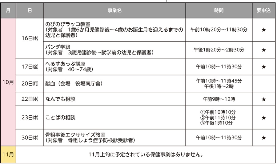 健康 10月下旬・11月上旬の保健事業 31/41 前の記事 次の記事 発行日 : 2025年10月01日 自治体名 : 千葉県芝山町 広報紙名 : 広報しばやま 令和7年10月号 教室・講座・健診など(★印は要申込) 問合せ・会場:保健センター 【電話】77-1891 Tweet シェアする 保健センターからのお知らせ お知らせ