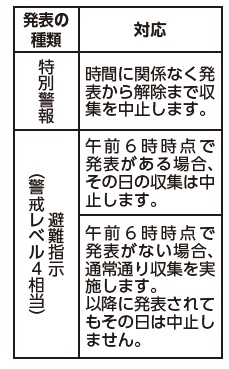 1.台風接近などによる荒天時のごみ収集の中止基準