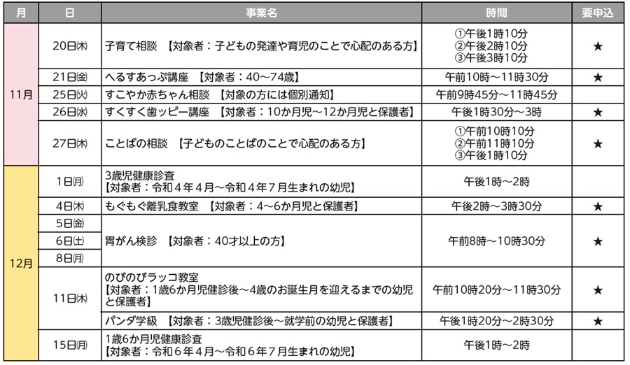 健康 11月下旬・12月上旬の保健事業 30/41 前の記事 次の記事 発行日 : 2025年11月01日 自治体名 : 千葉県芝山町 広報紙名 : 広報しばやま 令和7年11月号 教室・講座・健診など(★印は要申込) 問合せ・会場:保健センター 【電話】77-1891 Tweet シェアする 子育て支援センター講座 お知らせ(1)