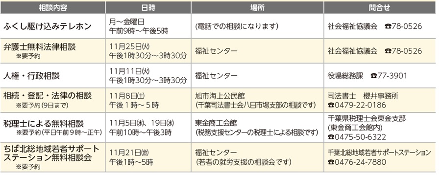 くらし 11月の無料相談 35/41 前の記事 次の記事 発行日 : 2025年11月01日 自治体名 : 千葉県芝山町 広報紙名 : 広報しばやま 令和7年11月号 お気軽にご相談ください Tweet シェアする 11月のごみを出す日 航空科学博物館情報