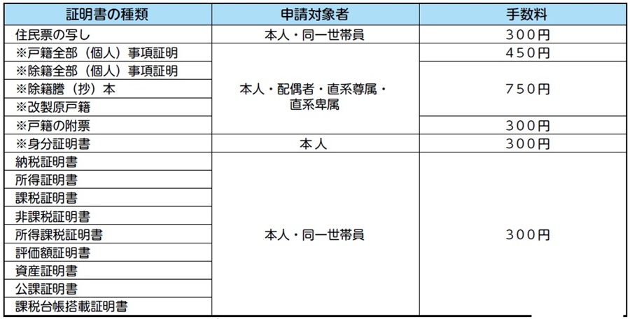 ※戸籍関係の証明書は睦沢町に本籍がない方は利用できません。