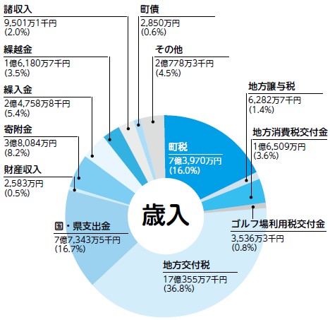 ・諸収入:町預金利子や各施設の利用料など