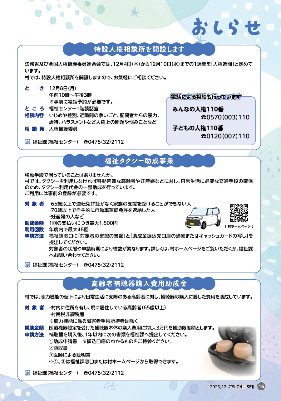 くらし 広報ちょうせい 令和7年12月号 No.566 P.16 16/24 前の記事 次の記事 発行日 : 2025年12月01日 自治体名 : 千葉県長生村 広報紙名 : 広報ちょうせい 令和7年12月号 No.566 Tweet シェアする 広報ちょうせい 令和7年12月号 No.566 P.15 広報ちょうせい 令和7年12月号 No.566 P.17