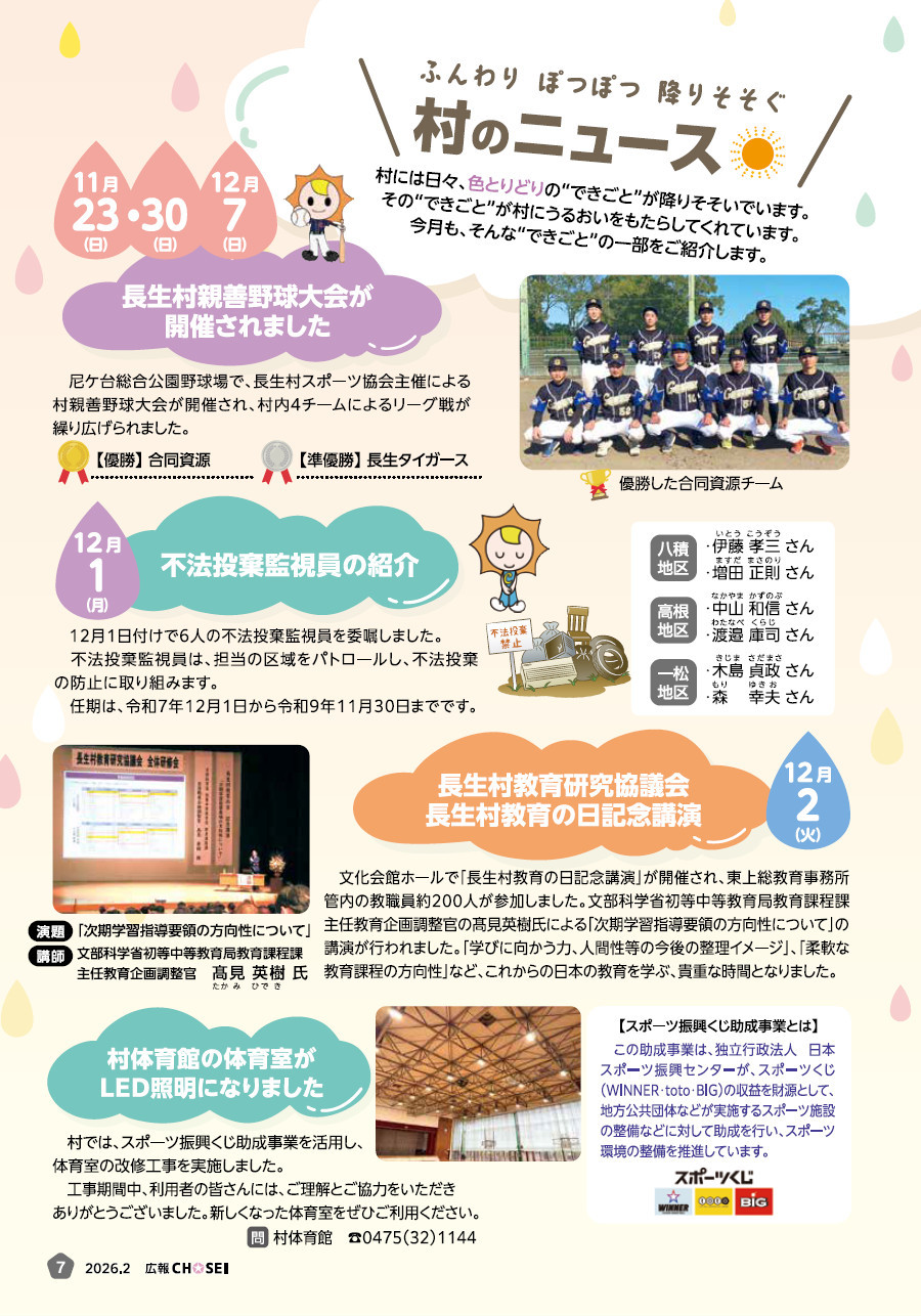 くらし 広報ちょうせい 令和8年2月号 No.568 P.7 7/24 前の記事 次の記事 発行日 : 2026年02月01日 自治体名 : 千葉県長生村 広報紙名 : 広報ちょうせい 令和8年2月号 No.568 Tweet シェアする 広報ちょうせい 令和8年2月号 No.568 P.6 広報ちょうせい 令和8年2月号 No.568 P.8